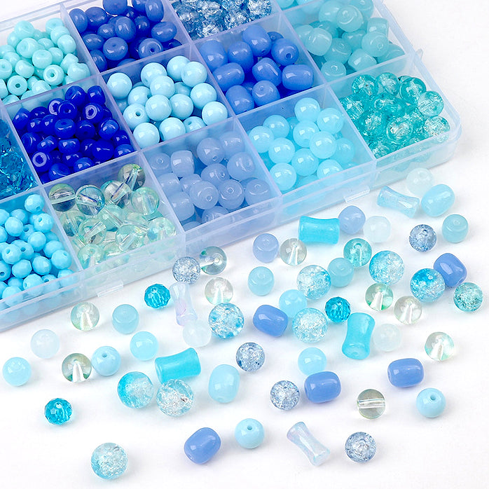 Glass beads, blue series, round, 8mm, 20 pcs Unleash your creativity with these stunning Blue...