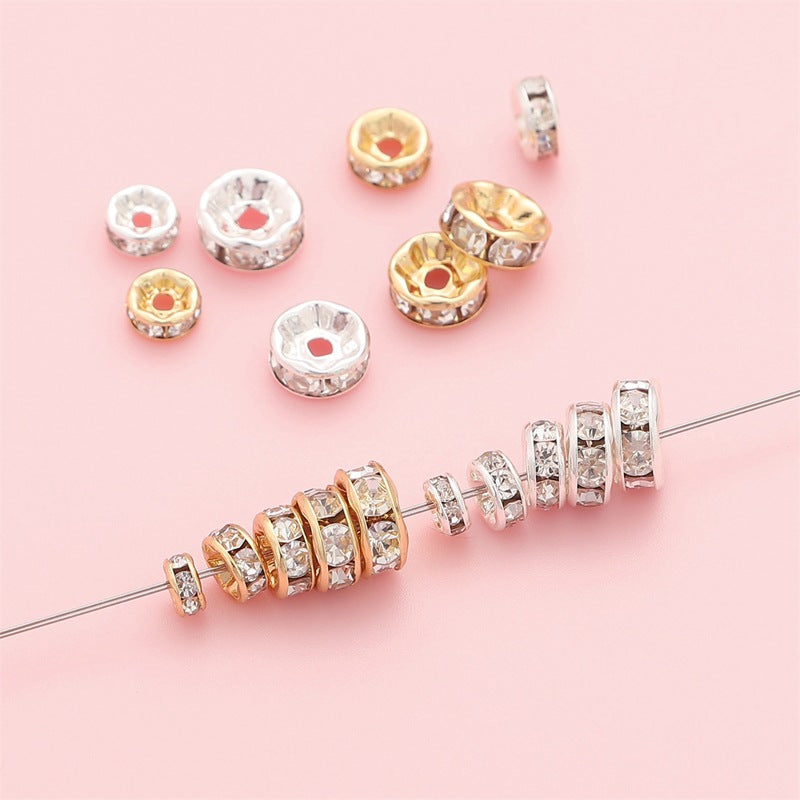 Enhance your jewelry designs with these exquisite 14K Gold Plated Diamond Spacer Beads! Available in five elegant sizes (4mm-8mm), each set includes 10 premium copper beads with luxurious 14K gold plating and sparkling diamond accents. These versatile spacers are perfect for creating professional separations between beads in necklaces, bracelets, and rings, while adding a touch of sophistication to Hanfu accessories and high-end fashion embellishments.