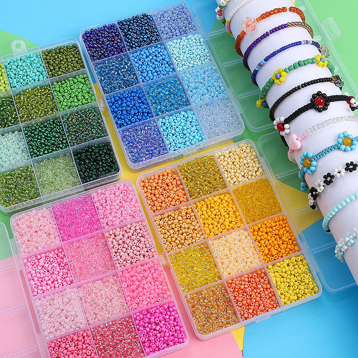 Kickstart your jewelry-making projects with this vibrant 12-Compartment Pony Beads Set! This comprehensive set includes approximately 6,000 high-quality glass seed beads in 12 stunning colors, perfect for creating intricate and unique handmade jewelry and accessories. Each bead measures about 3mm in width with a 1mm hole diameter, making them ideal for threading and detailed beadwork. Packaged in a convenient OPP bag, this set is perfect for crafting bracelets, necklaces, rings, tassels, and more. The durable glass material ensures your designs are both stylish and long-lasting. Whether you're a beginner or an experienced crafter, this set will inspire you to create jewelry that stands out with its precision and vibrant charm.