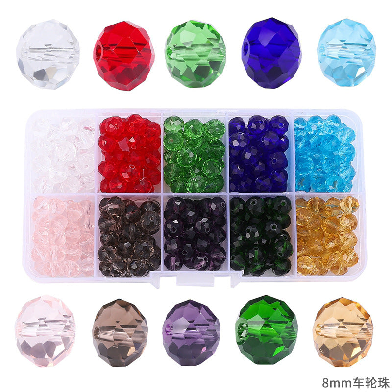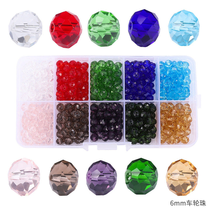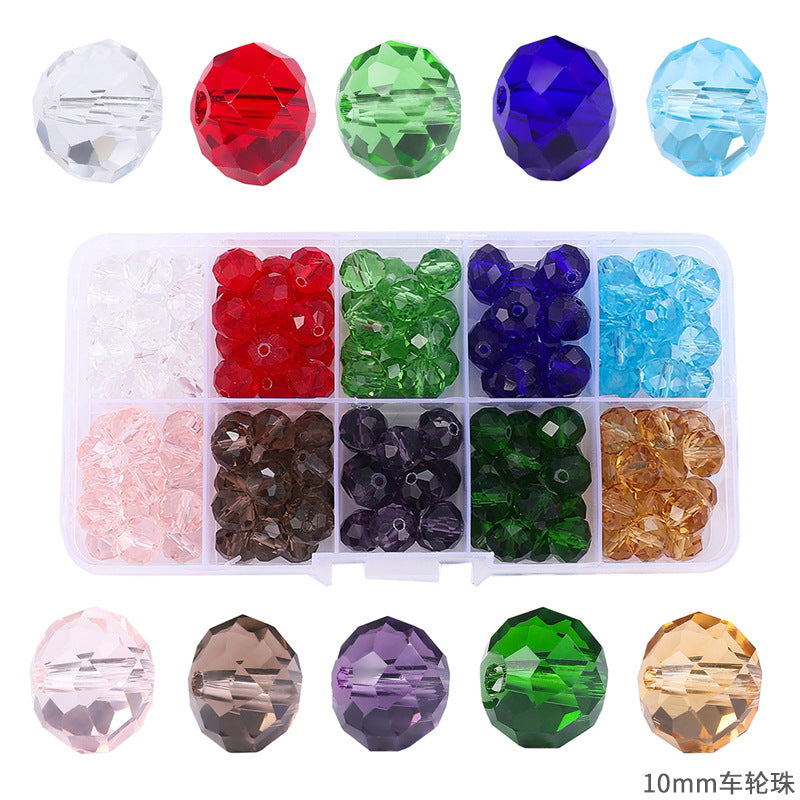 DIY Glass Wheel Bead Jewelry Making Starter Set – 10-Compartment Box! This comprehensive set includes high-quality glass wheel beads in four sizes (4mm, 6mm, 8mm, and 10mm) and ten stunning colors, perfect for creating elegant bracelets, necklaces, earrings, and more. Each compartment contains a generous quantity of beads: 100 beads for 4mm, 50 beads for 6mm, 30 beads for 8mm, and 15 beads for 10mm. The set also includes essential tools and accessories like 0.8mm crystal cord, small scissors, jump rings, and lobster clasps, making it a complete starter kit for DIY enthusiasts. Packaged in a convenient 10-compartment plastic box, this set is ideal for crafting professional-quality jewelry with ease.