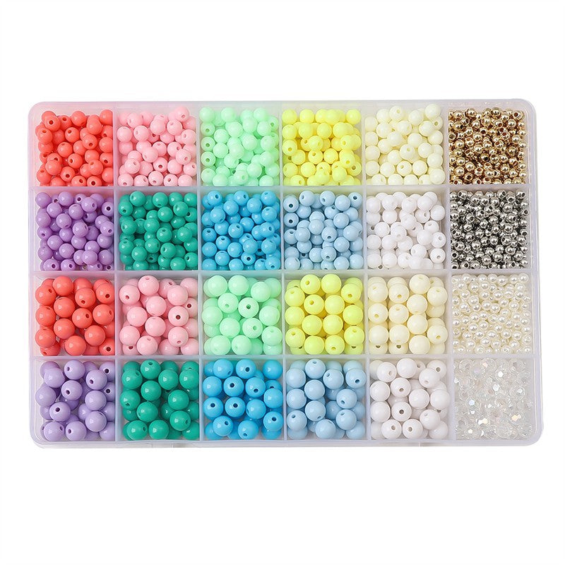 Kickstart your jewelry-making projects with this vibrant 24-Compartment Solid Color Acrylic Bead Set! This comprehensive set includes approximately 1,350 high-quality acrylic beads in 24 stunning colors, perfect for creating bold and unique handmade jewelry and accessories. Each bead features a smooth, polished finish, making them easy to thread and incorporate into your designs. Packaged in a convenient 24-compartment plastic box, this set is ideal for crafting bracelets, necklaces, rings, tassels, and more. The lightweight and durable acrylic material ensures your designs are both stylish and long-lasting. Whether you're a beginner or an experienced crafter, this set will inspire you to create jewelry that stands out with its vibrant colors and versatility.