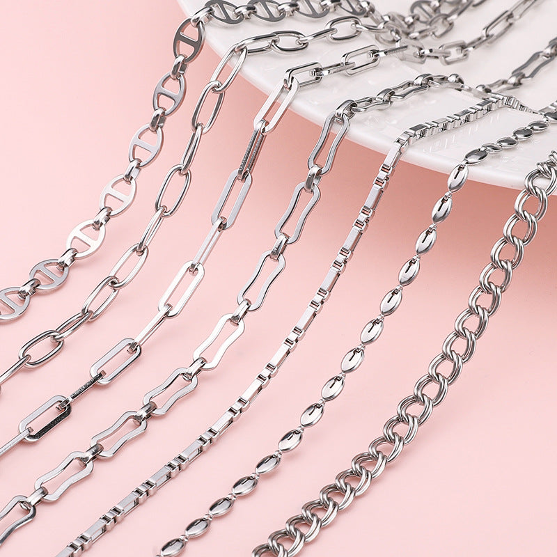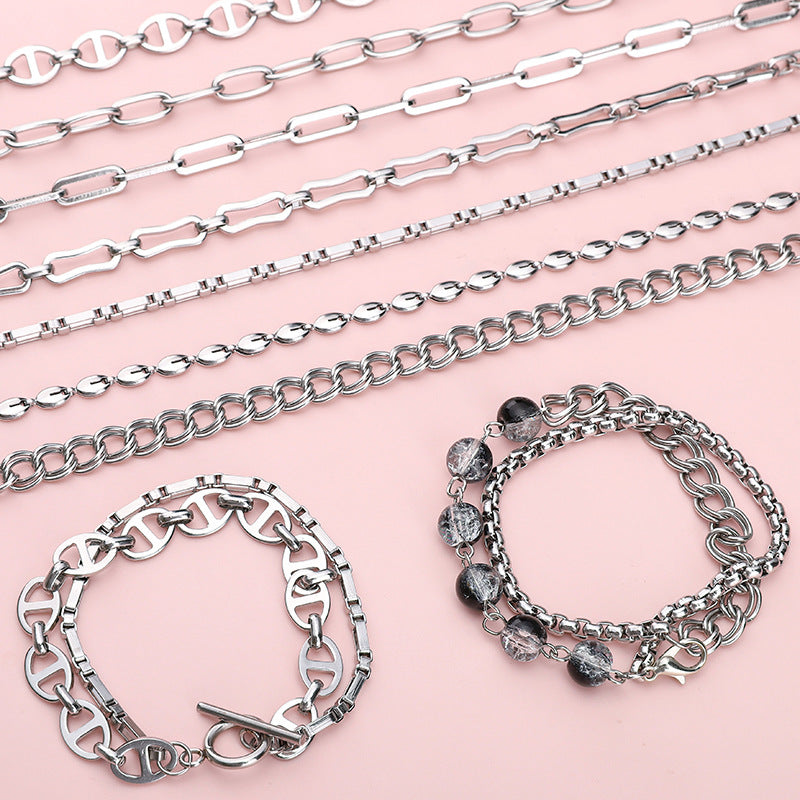 Elevate your jewelry creations with these premium Stainless Steel Jewelry Chains! Available in multiple sizes and styles, these durable chains feature high-quality stainless steel construction that resists tarnishing and maintains its shine. Each 1-meter length comes securely packaged in protective OPP bags, ready for your creative projects.
