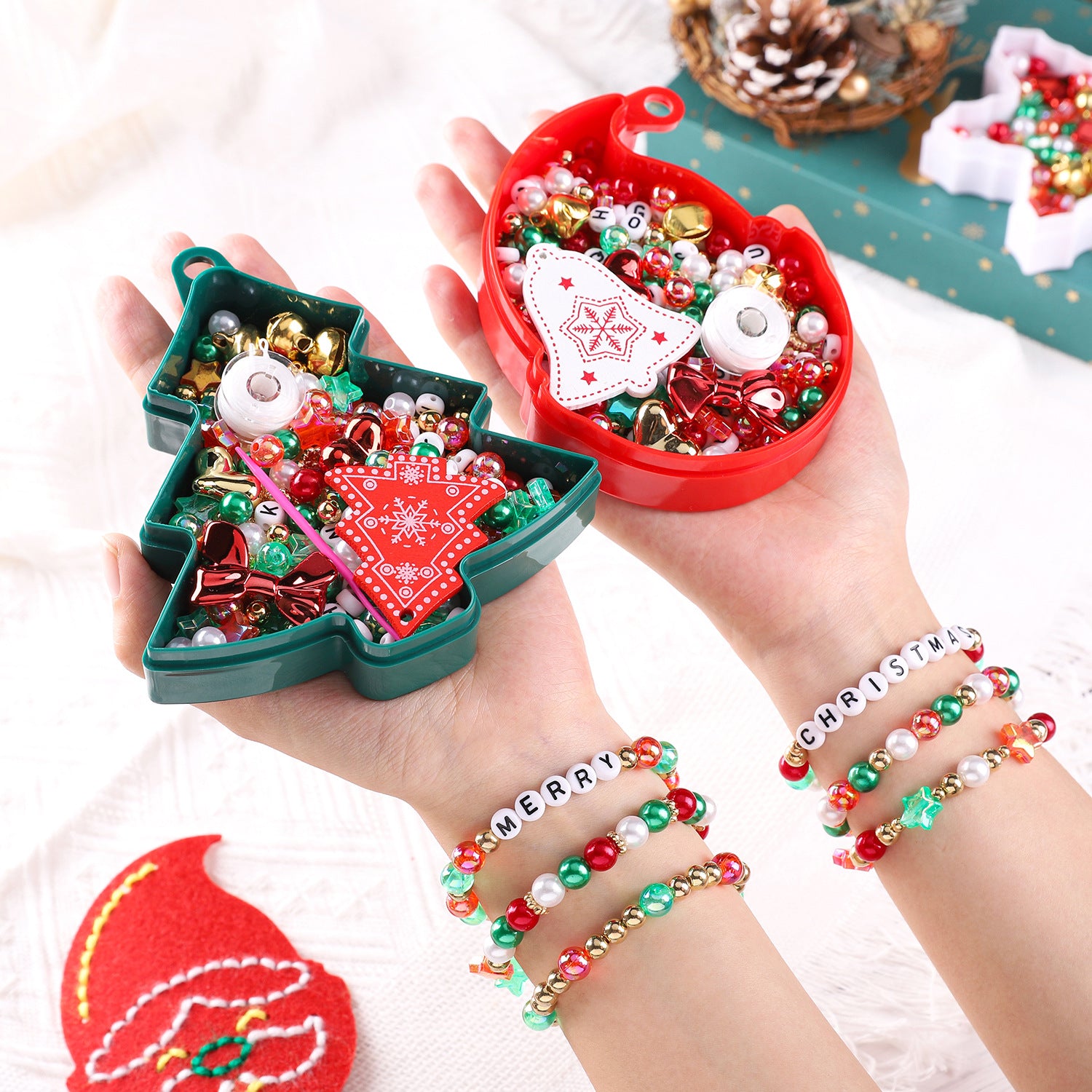 Celebrate the holiday season with this **Cartoon Christmas Bead Kit**! This festive DIY jewelry and craft set includes a variety of colorful beads and Christmas-themed charms—perfect for creating bracelets, necklaces, phone straps, and decorative ornaments. Designed for both beginners and experienced crafters, this kit brings joy and creativity to your holiday projects, making it a wonderful activity for kids, families, and DIY enthusiasts.