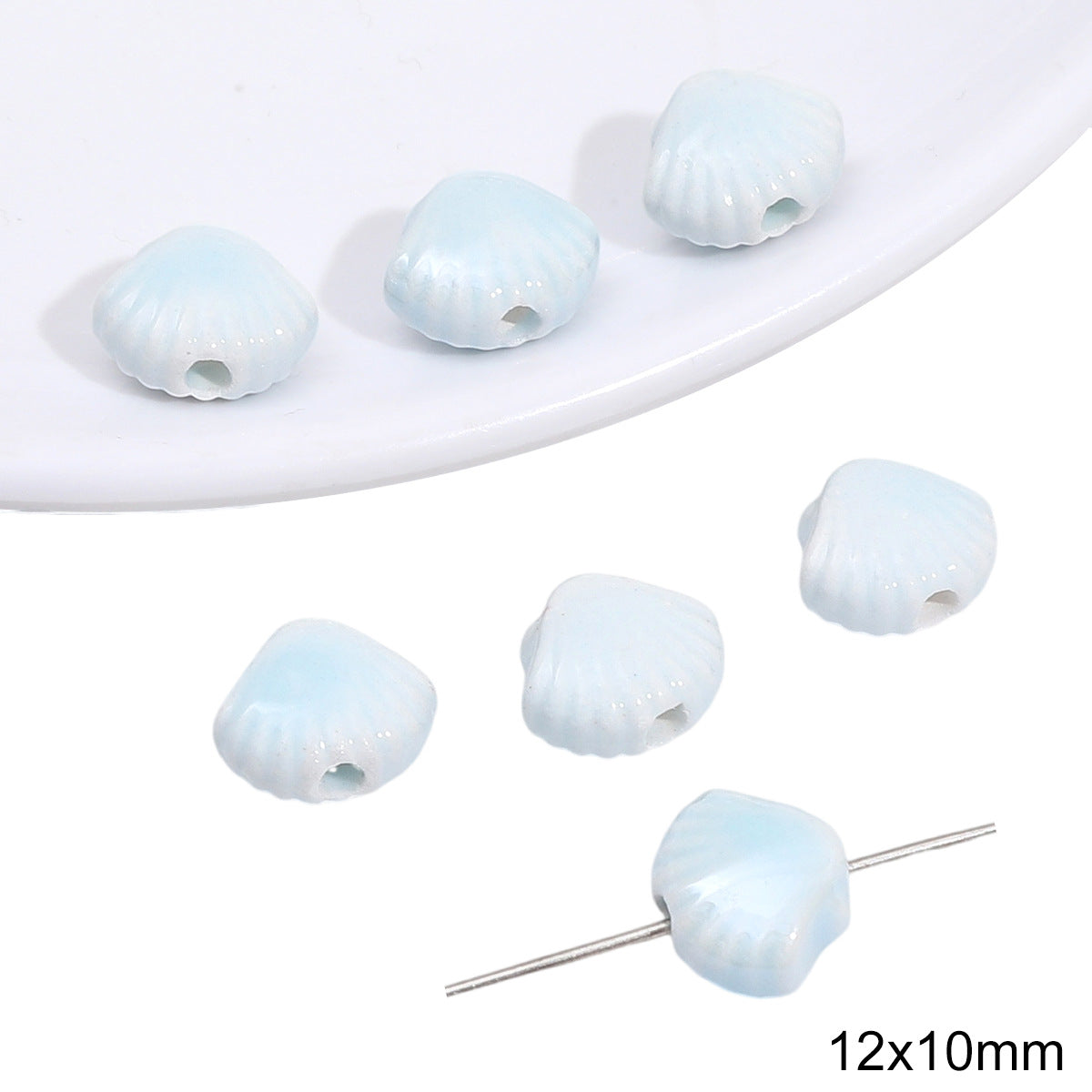 Conch Shell Ceramic Blue Tone Beads Jewelry Making Supplies