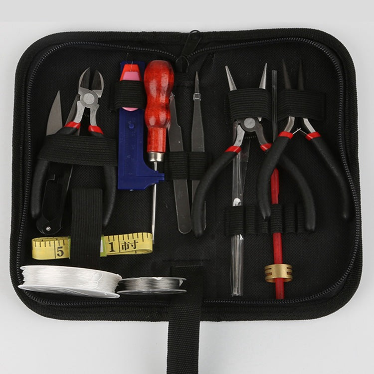 This Jewelry Making Tool and Material Starter Kit is the ultimate choice for anyone passionate about jewelry making.This all-in-one set includes everything you need to create stunning handmade jewelry and accessories. The kit features essential tools such as black-handled pliers (round-nose, chain-nose, and wire cutters), scissors, an awl, a blue plastic caliper, a soft measuring tape, and more. It also includes high-quality materials like 0.7mm crystal elastic cord, 0.38mm stainless steel wire, beading needles, and a durable canvas bag for storage. Whether you're crafting bracelets, necklaces, rings, or other accessories, this kit provides the tools and materials to bring your creative visions to life. Perfect for beginners and experienced crafters alike, this set is your go-to solution for professional-quality jewelry designs.
