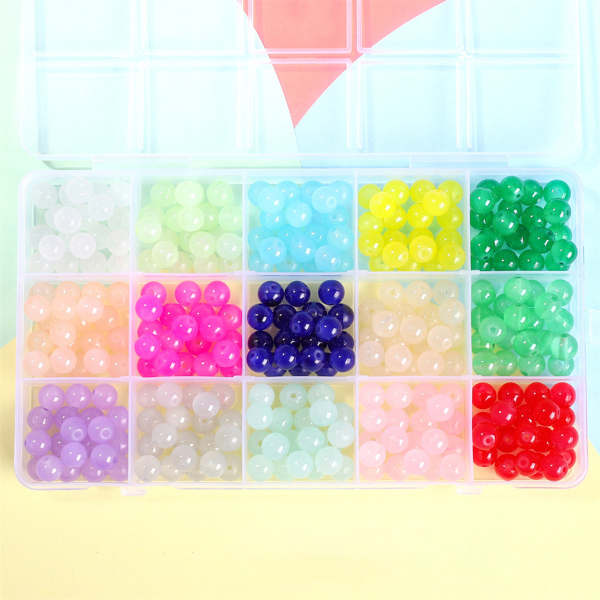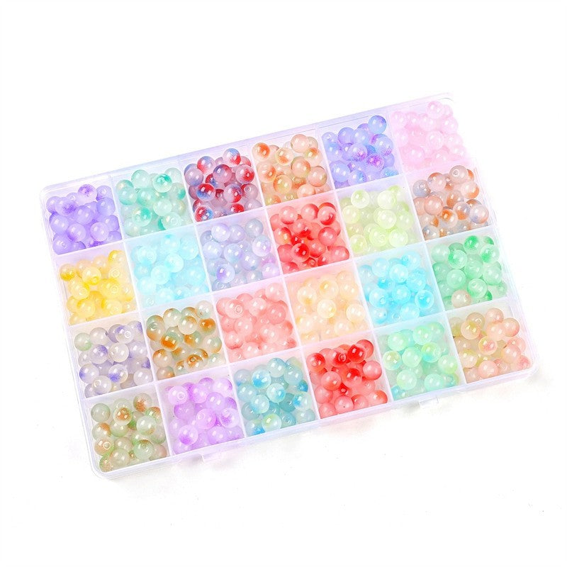 DIY Glass Explosion Beads Bracelet Beading Kits – Assorted Sizes Unleash your creativity with this vibrant Jelly Glass Bead Starter Set! This comprehensive set includes high-quality glass beads in a variety of sizes and translucent, jelly-like colors, perfect for creating stunning handmade jewelry and accessories. Packaged in a convenient storage box, this set is ideal for crafting bracelets, necklaces, rings, tassels, and more. The beads’ translucent finish gives them a soft, glowing appearance, making them perfect for adding a touch of elegance and playfulness to your designs. Whether you're a beginner or an experienced crafter, this set will inspire you to create jewelry that shines with unique charm.