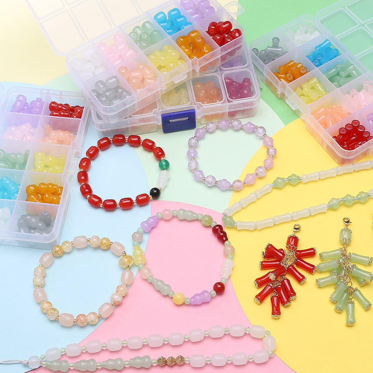 Glass Imitation Jade Straight Hole Lamp Date Bead Bamboo Bead Set - 10 Grids