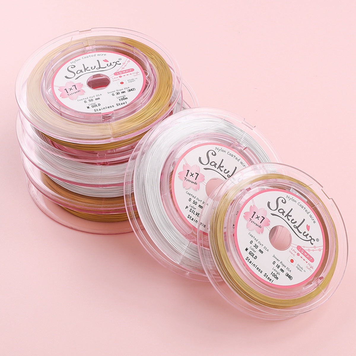 Elevate your jewelry craftsmanship with this premium Soft Steel Wire Gold Wire - the professional's choice for creating durable and flexible necklaces, bracelets, and earrings! This high-performance wire features an innovative 7-strand stainless steel core construction with a protective nylon coating, offering exceptional strength while maintaining perfect flexibility. Perfect for stringing pearls, beads, and creating elegant jewelry pieces that retain their shape beautifully.