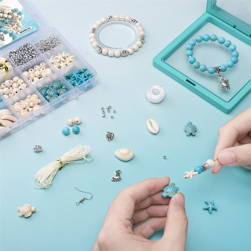 Summer Ocean-Inspired DIY Jewelry Kit – Turquoise & Seashell Beads Set for Handmade Bracelets & Necklaces