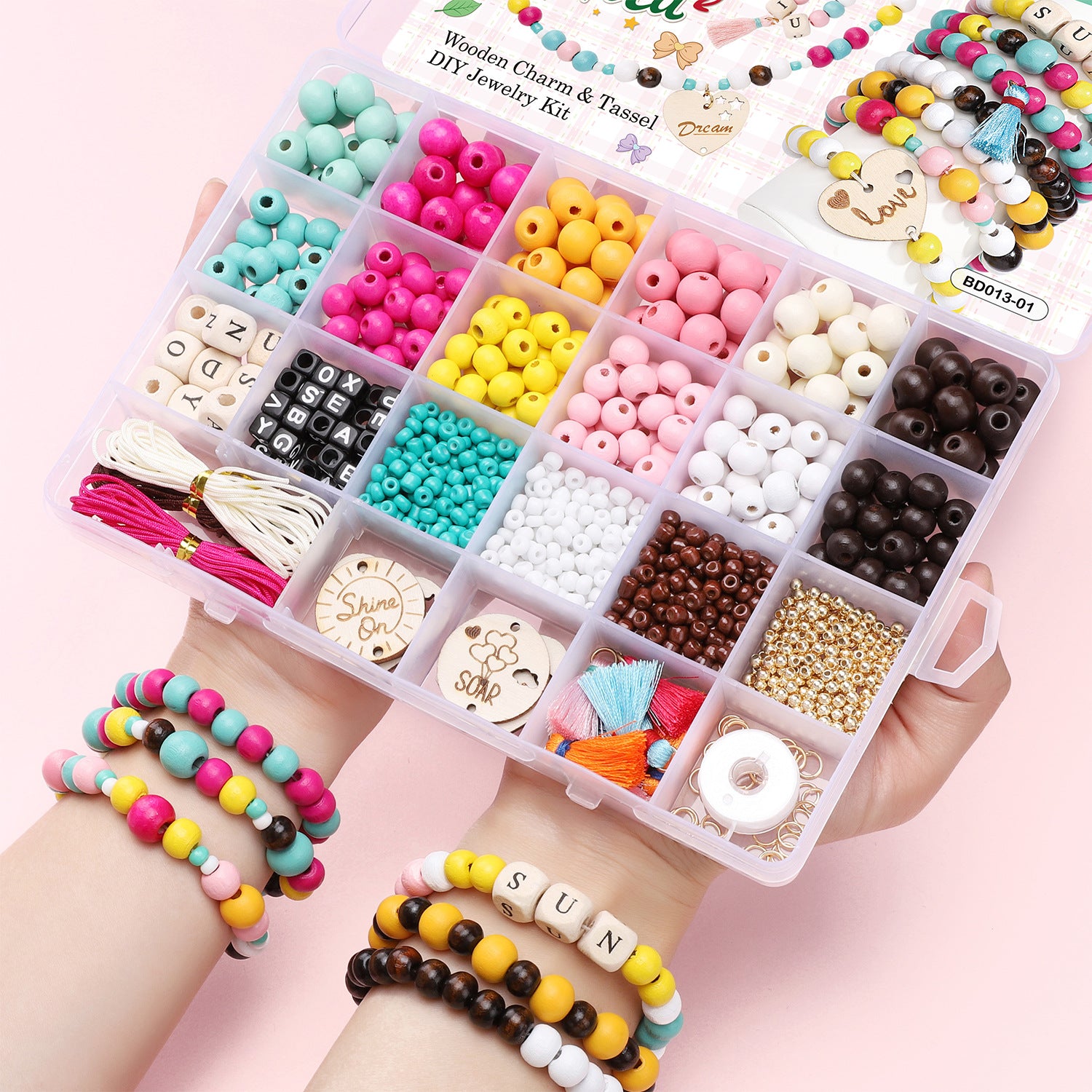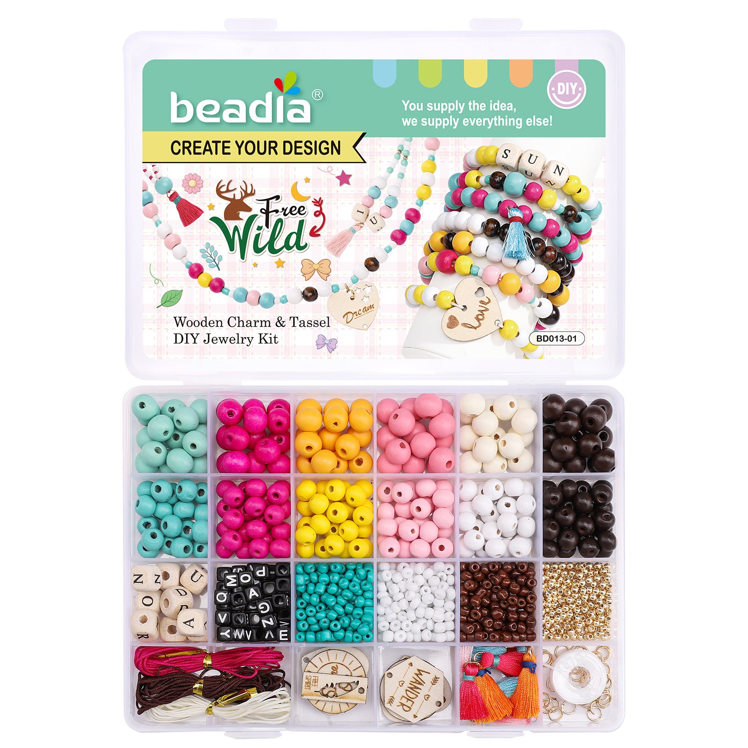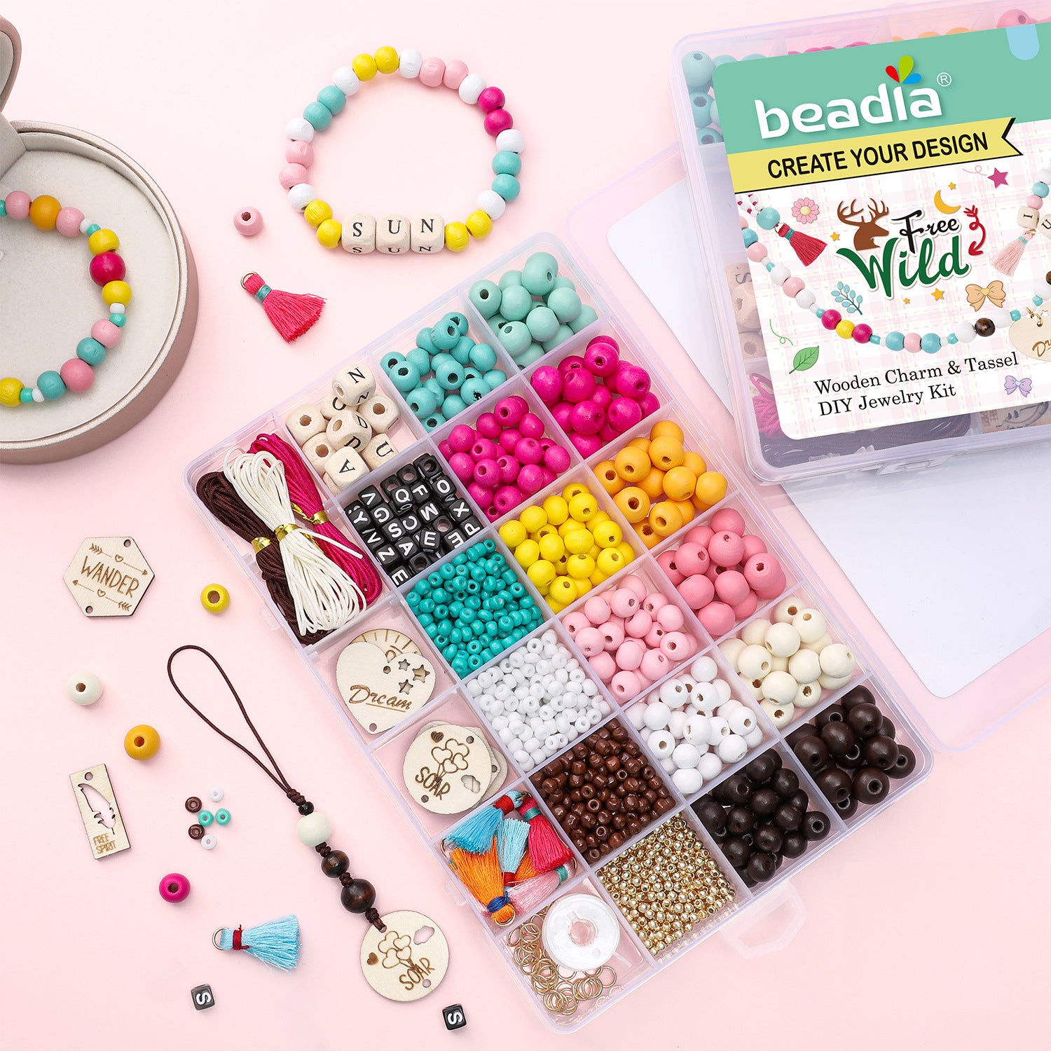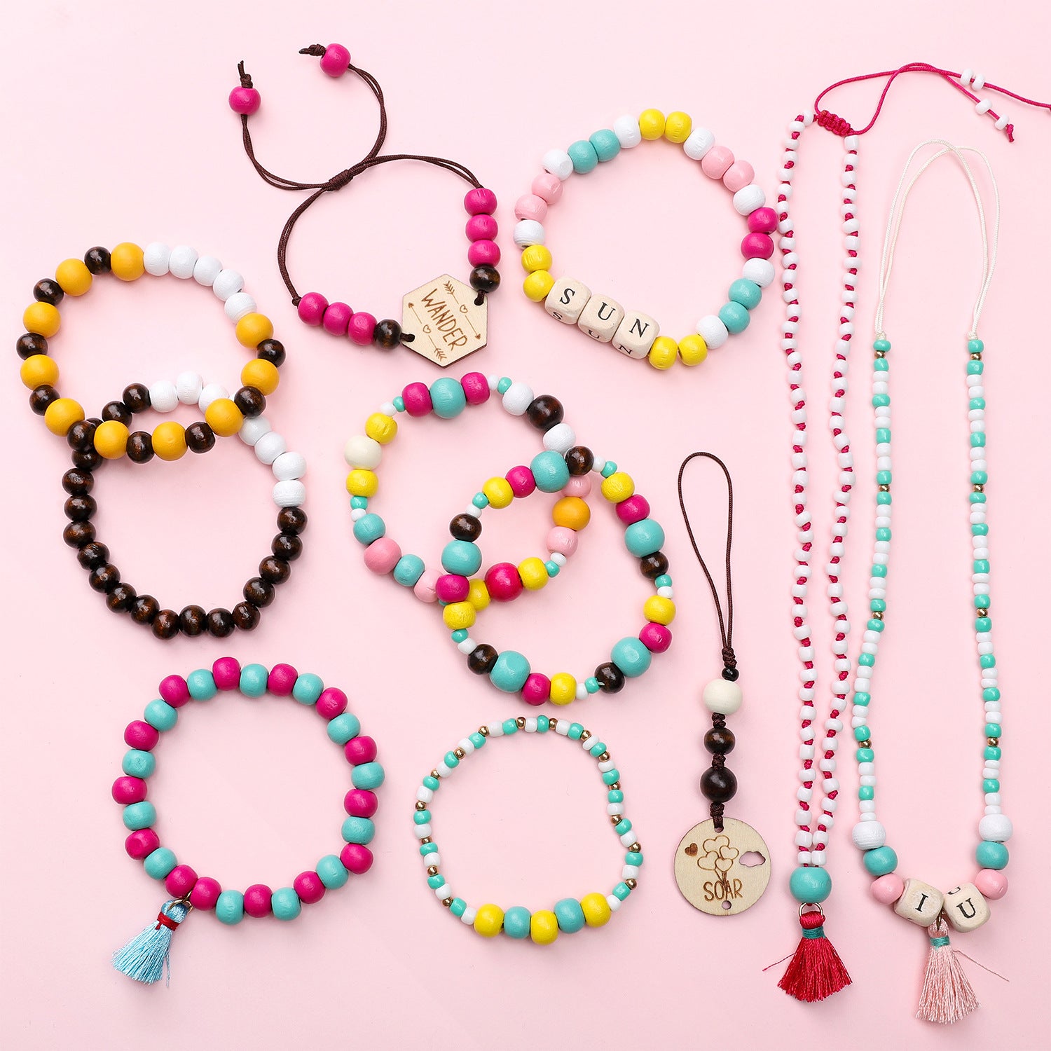 Wooden Bead & Tag Kit – DIY Jewelry Making Set for Bracelets, Necklaces & Keychains